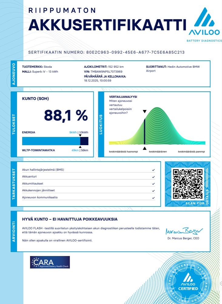 - Katso lisätietoja kotisivuiltamme https://www.hedinautomotive.fi/auto/Skoda/Superb/ITZ-839/