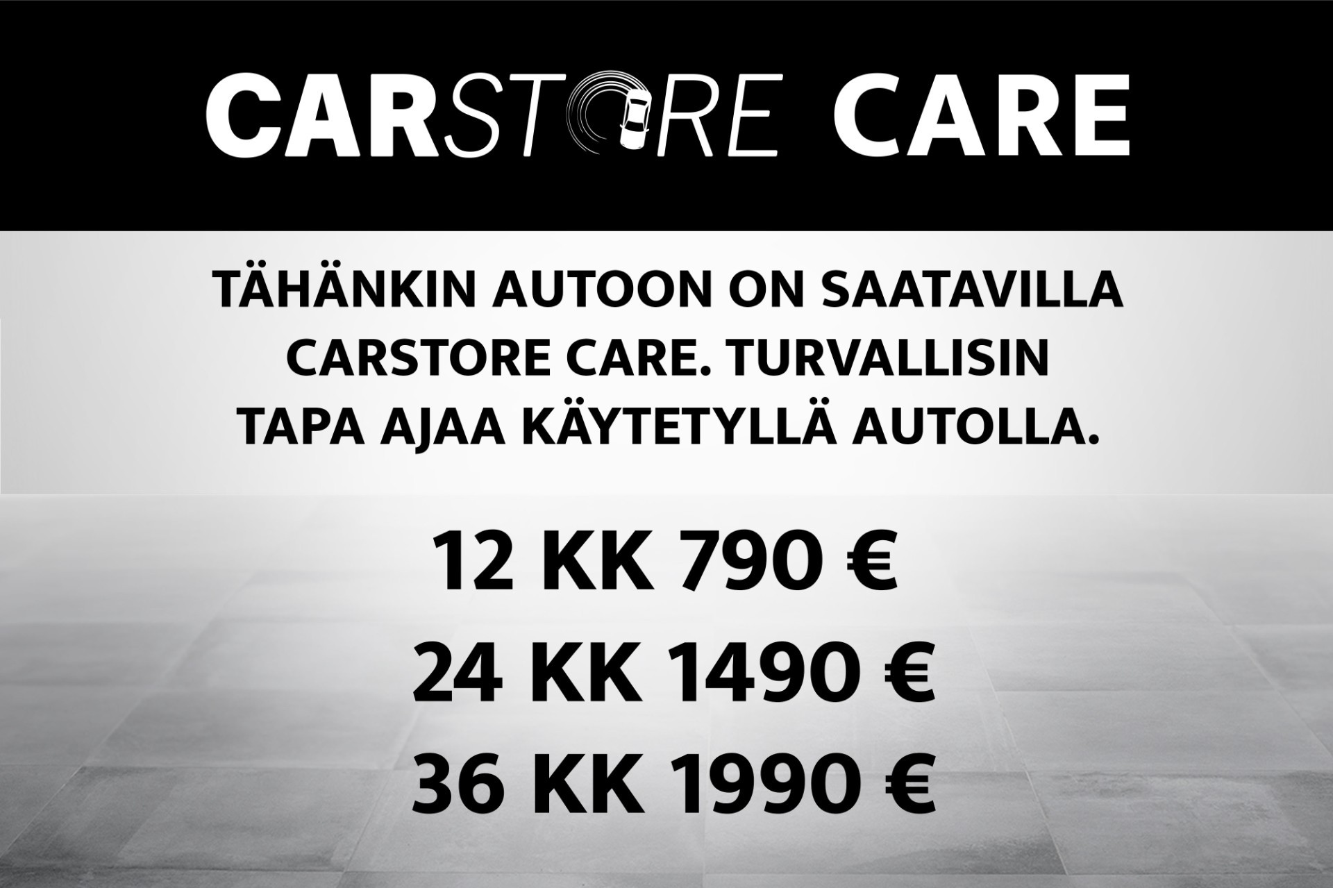 - Tähän autoon on saatavilla Carstore Care lisäturva 12 kk, 24 kk tai jopa 36 kk. Carstore Care lisäturva on voimassa siihen asti kun auto saavuttaa 300 000 km tai se saavuttaa 20 vuoden iän, tai sopimusaika päättyy.
