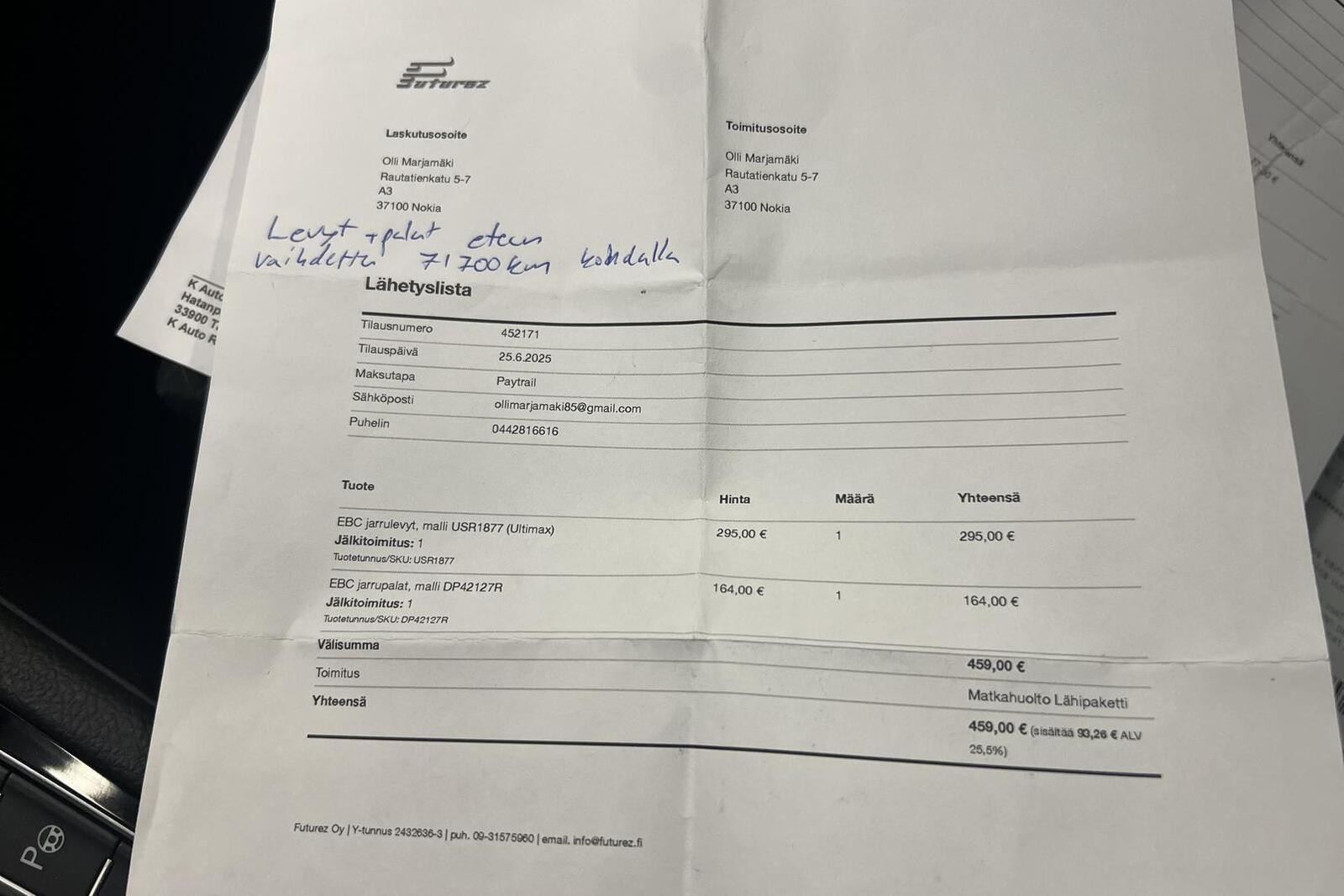 - Tarkista tietojen oikeellisuus myyjältä.
